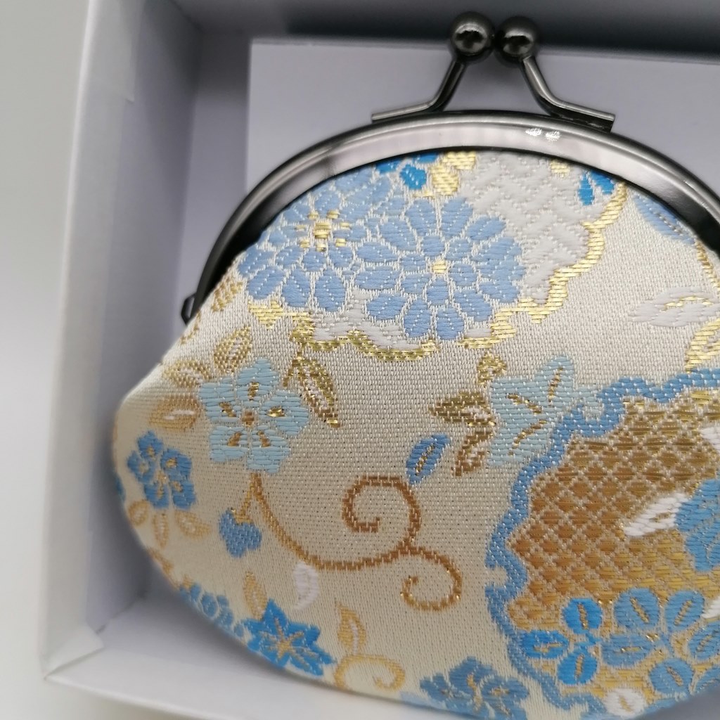 Portamonete in tessuto broccato “Kyoto Nishijin-ori”, leggero, brillante e resistente, dal design tradizionale con chiusura a clic-clac. Prodotto dalla storica azienda Kamiya di Kyoto, ogni loro creazione è un pezzo unico di artigianato locale!